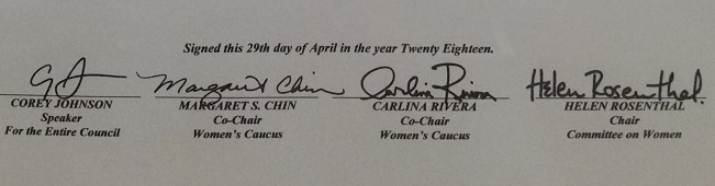 Melodia Women’s Choir’s was honored to receive a special proclamation from the New York City Council in April, presented by the office of NYC Council Speaker Corey Johnson. The proclamation honors Melodia for delighting listeners with high quality musical performances and “for fostering greater harmony throughout our community and beyond.” The proclamation was presented to Melodia’s leadership team Cynthia Powell and Jenny Clarke at our 15th Anniversary concert on April 28, 2018 by Cultural Affairs representative, Robbie Welch.
