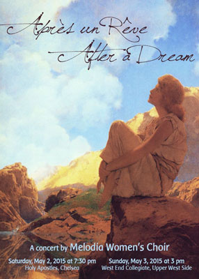 Three selections by the Bulgarian Folk Choir (Erghen Dada, Polegnala e todora and Bre Petrunka) kick off the evening. The Fauré Messe Basse (Low Mass) was on the first Melodia concert back in 2004 marks a poignant return to the roots of the chorus, while the inclusion of iconic works like Shenandoah and other folk-oriented music are sure to resonate with audiences.