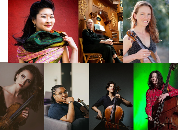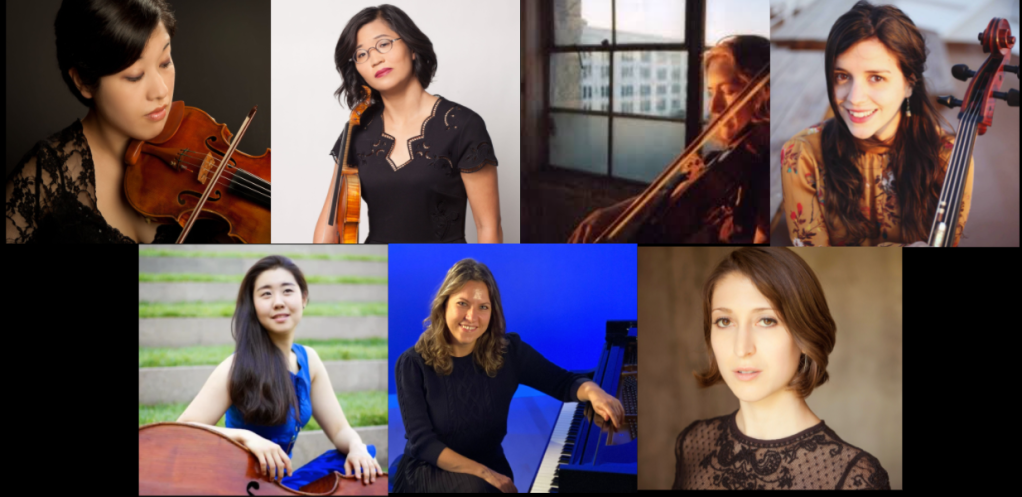 Janet Sora Chung, piano, Allison Sniffin, organ; Laura Albers and Audrey Hayes, violins; Cameren Anai Williams, viola; Jules Biber, cello; and Eleonore Oppenheim, bass.