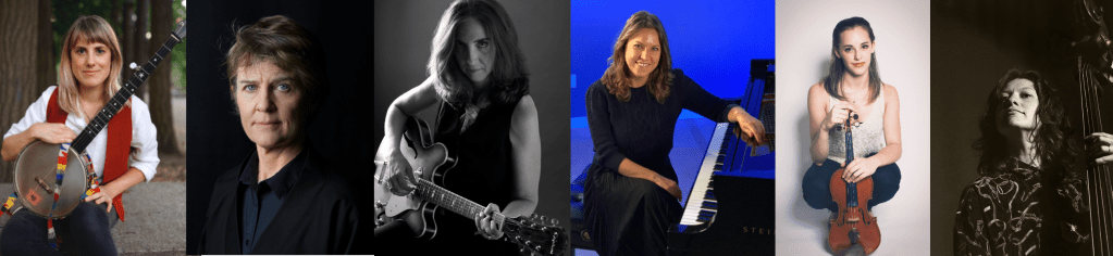 Bottom L-R Audrey Hayes, violin; Cameren Anai Williams, viola; Jules Biber, cello; and Eleonore Oppenheim, bass.